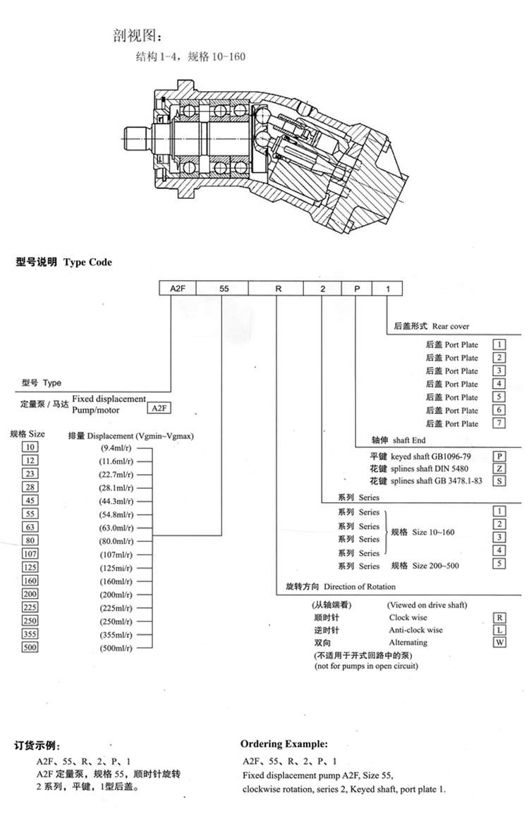 A2F 柱塞泵 160排量規格產品主要型號如下: