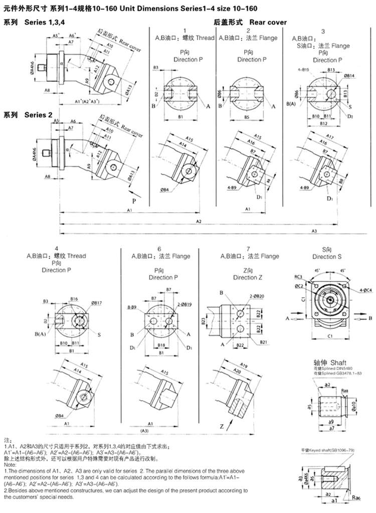 A2F斜軸式軸向柱塞泵產品結構尺寸圖