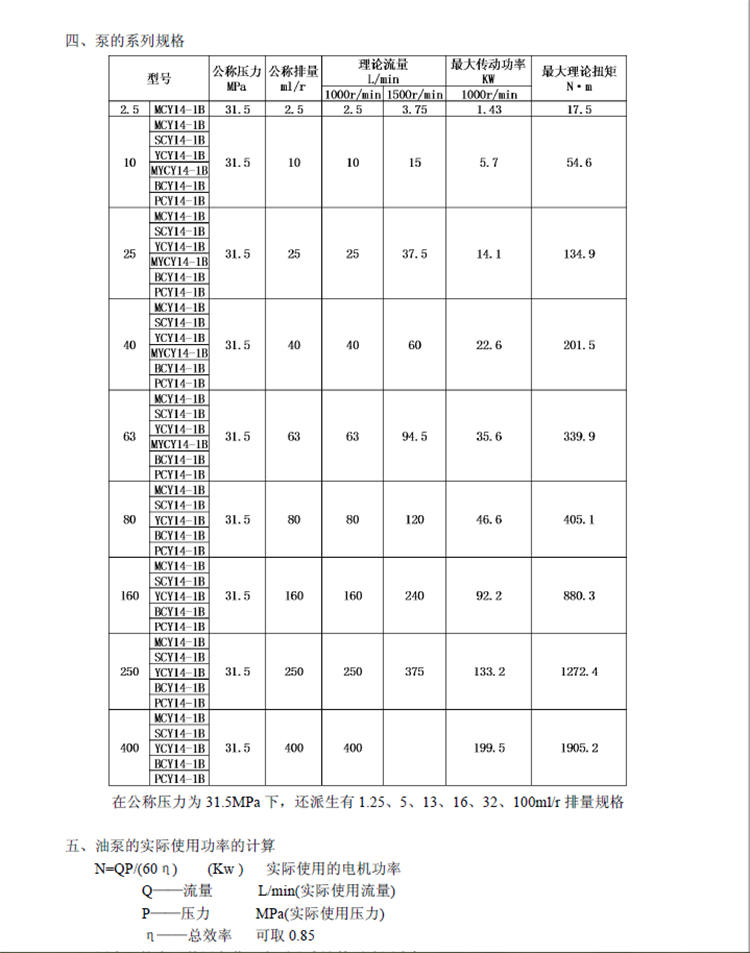 40SCY-14B柱塞泵技術參數: