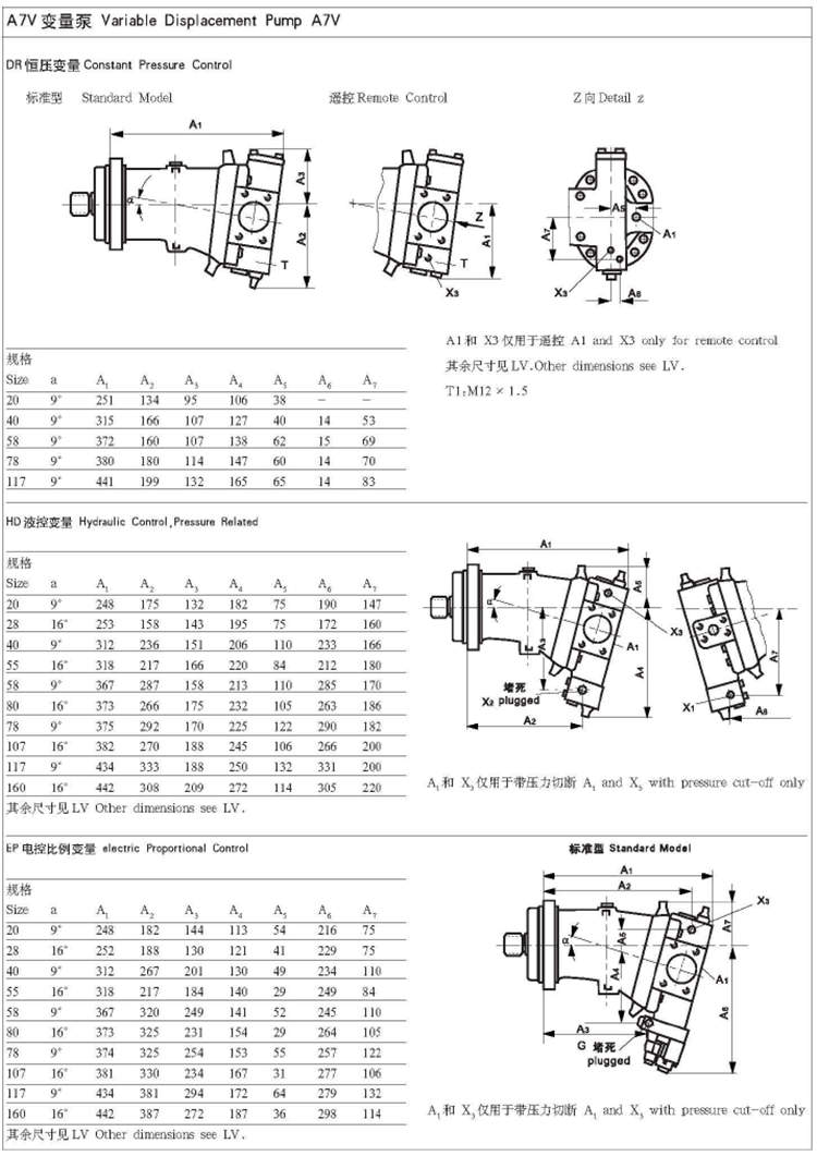 A7V柱塞泵規格包括A7V20、55、80、107、160、250、500等。