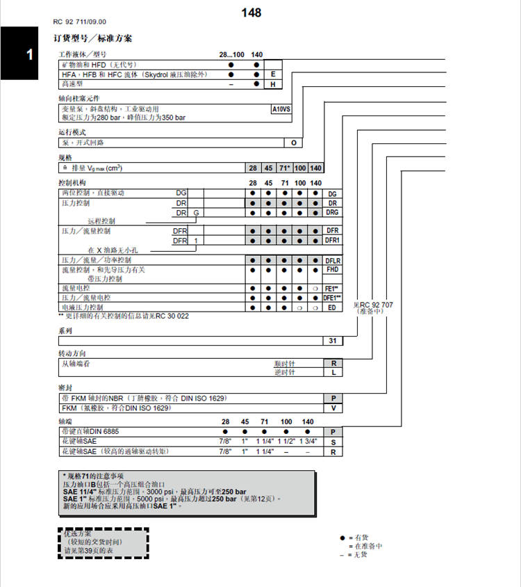 A10VSO100DFLR/31R-PPA12N00型號說明: